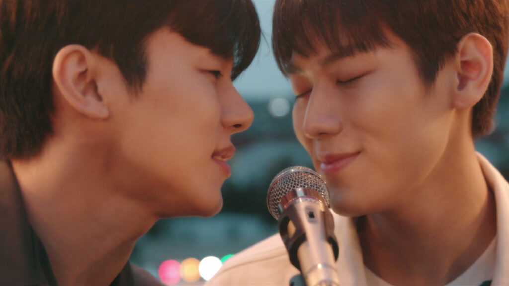 本作でストリートシンガー、カン・インスを演じたのは、「リュソンビの婚礼式」で主演を務めたMYNAMEのカン・インス。そして、キーボーディスト、ユン・サンイ役を演じたのはIMFACTのイサン。そんな2人が共演した本作は、音楽がふんだんに使われた音楽BLとなっている。普段アーティストとして活躍する2人の演技と実際に歌う歌唱シーンにも注目!